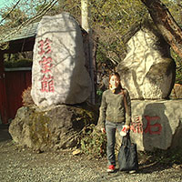 秘宝館マニアであれば一度は訪れねばならない聖域、群馬・珍宝館に行く。秘宝館マニアのメッカだけに、気を緩める訳にはいかん。。。とは言え、移動手段はあくまで電車+バス+徒歩を貫き通す貧乏旅行、ここまで来るのはちょっとした長旅だった。JR・高崎線終点高崎駅から「伊香保」行きバスに揺られること1時間強。「おもちゃ博物館」前で下車、ああ、山の上だけあって空気がおいしく肌寒い。坂道を上る途中で空腹に耐えかね「はちみつうどん」(うまい!)を食べて身体を温め、歩くこと3分、やっと着いたよ念願の珍宝館!やっぱり車で来るべきだったと反省しつつ、駐車場にある小屋(?)にて入場料800円を払う。 珍宝館と言えば、名物女将「ちんこさん」である。私もちんこさんに会うことを旅の最大目標にしていた。下ネタを流暢に織りまぜつつ、訪れる人を必ずや満足させる語りで館内を案内するという、言わば伝説の女性。ああ、ちんこさんよ早く姿を現して下さい!と祈りつつお財布を取り出す。。あれ、お金を受け取るこの黒髪おかっぱブルージーンズにスリッパの中年女性が、も、もしやち、ちんこさん?? 「はいはいはい、あなたもうがまん汁出てるんじゃない?」「おま○こ濡れてきたでしょ〜」と言いつつ鮮やかに客全員の陰部を軽くタッチ。「これが噂のムネオ・ハウスよ〜」最新の話題も巧みに取り入れつつ客を誘導。説明もクライマックス、恒例のクイズ(「ニッポンの歩き方」参照)で張り切って「11人ですよね!」と答える私を後目に「残念でした、12人隠れてるのよ〜。あらあなた、ちょっと発情してきたんじゃない?入れてみる?」とち○こ型の棒付き飴を差し出すちんこ女将。「サイズはS、M、Lの3種類、お試し期間あり。一週間以内なら返品可能、洗ってまた他の客に売るの。」う〜ん、ちょっと遠慮しときます〜。と勇気のない私。「この人形は真正面から見るもんじゃないのよ、失礼して下から覗いてごらんなさい。」3体並んだお多福のような人形を真下から見ようと客全員で覗き込むとあらあら、おま○こが丸見え!「うわ、こんな風に見えるんだ〜」とはしゃぐ隙に、ちんこさんは塵一つ残さず消えていた。。恐るべし、退散テクニック!ちんこさんの退場の美しさに、客は全員あっけにとられていた。ほんま、ちんこさんって。。 |